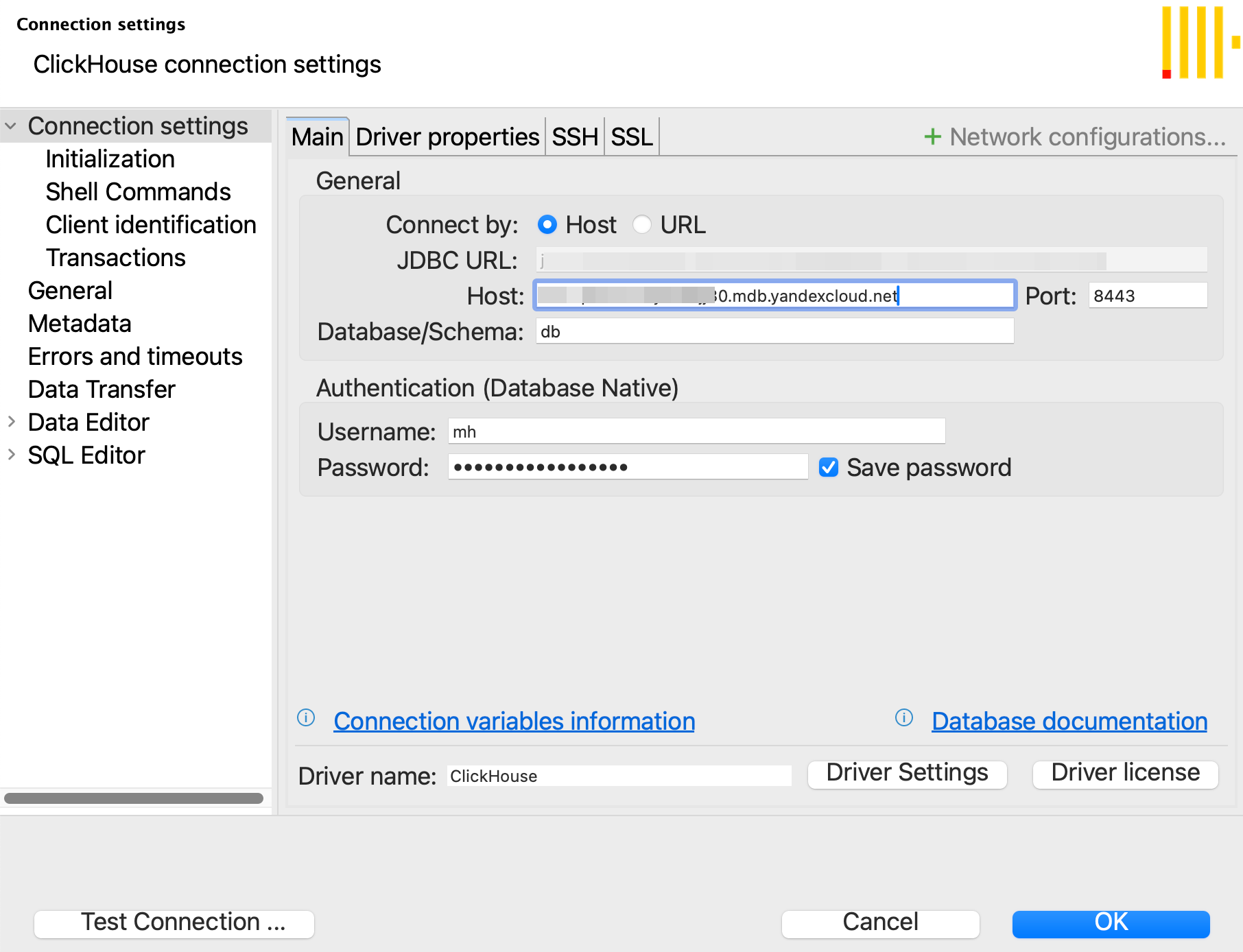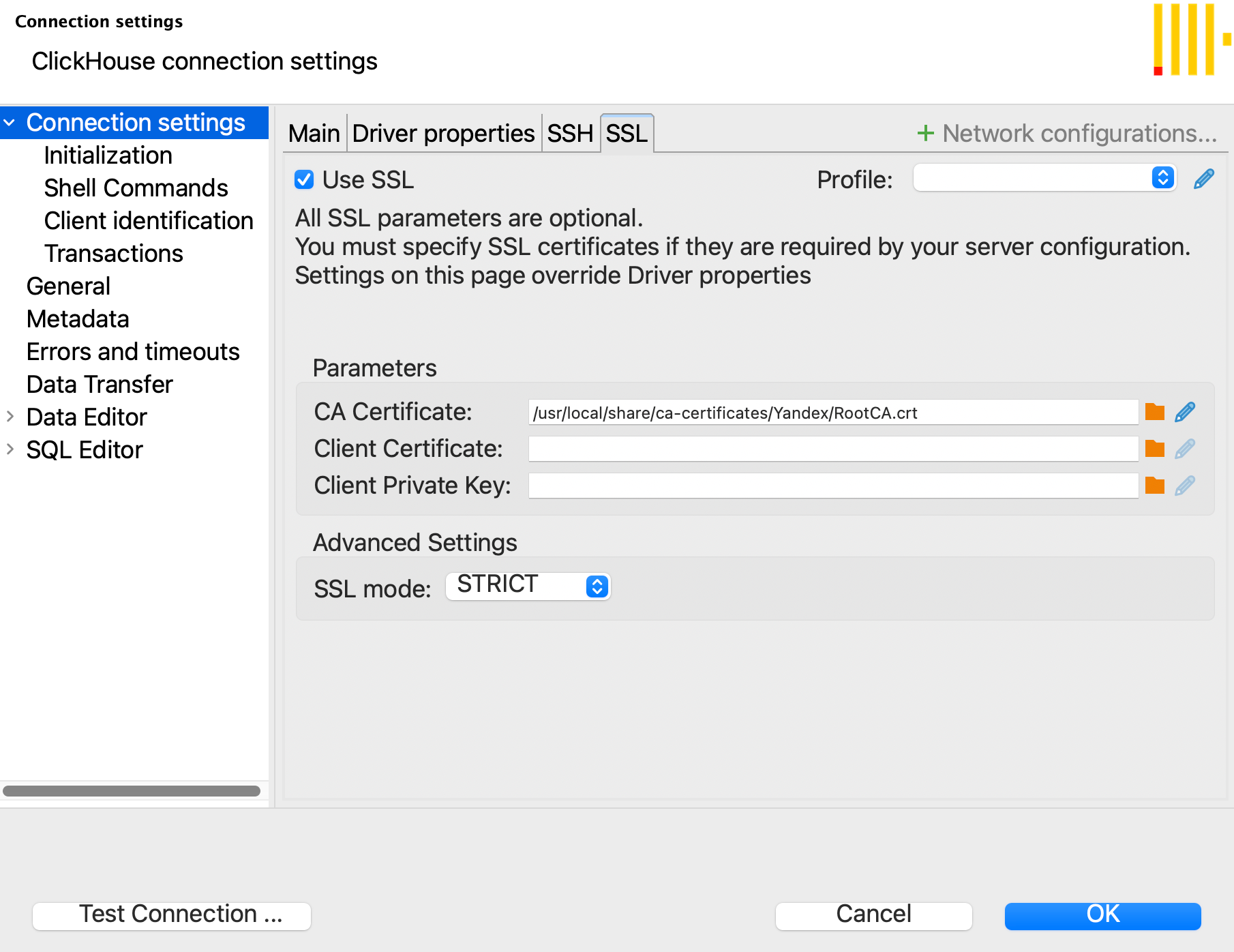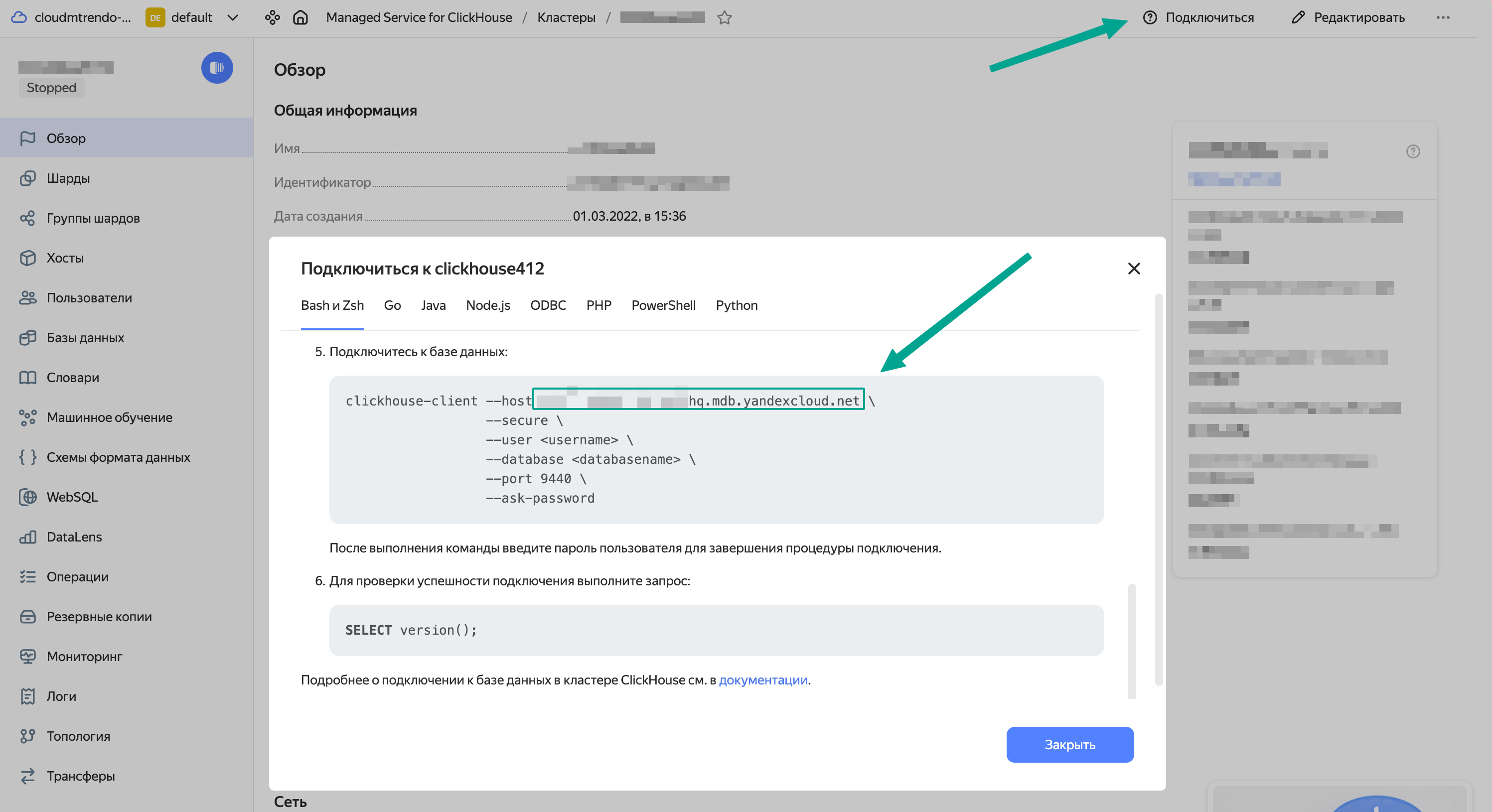 Для подключения к Clickhouse нужно сперва скачать сертификат для подключения.